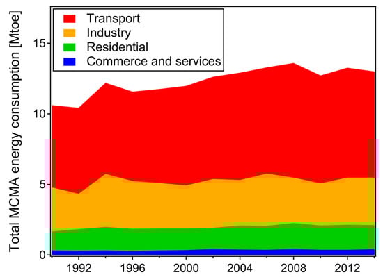 Trends in energy consumption for the key sectors in the Mexico City Metropolitan Area (MCMA). Source: SEDEMA [11].