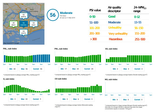 - SNEA (Singapore National Environmental Agency). Air Quality. 2019. Available online: https://www.haze.gov.sg/ (accessed on 11 March 2019).