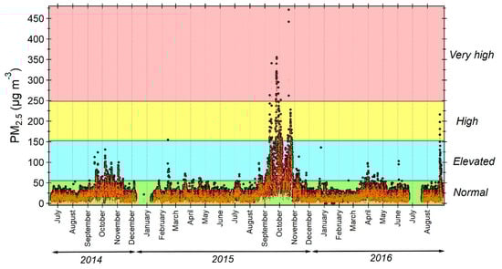 - NEA (National Environmental Agency). 1-hr PM2.5 (µg/m3) Readings. Available online: https://www.haze.gov.sg/resources/1-hr-pm2.5-readings (accessed on 10 July 2019).