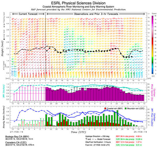 - Darby, L.; White, A.B.; Gottas, D.; Coleman, T. An evaluation of integrated water vapor, wind, and precipitation forecasts using water vapor flux observations in the Western United States. Weather Forecast. 2019. in review. [Google Scholar]