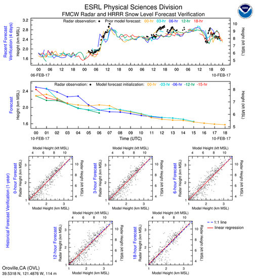 - White, A.B.; Gottas, D.J.; Henkel, A.F.; Neiman, P.J.; Ralph, F.M.; Gutman, S.I. Developing a Performance Measure for Snow-Level Forecasts. J. Hydrometeorol. 2010, 11, 739–753. [Google Scholar] [CrossRef]