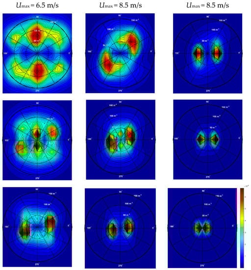 As mentioned in the Introduction, the zero-th moment m0 defines the characteristic wave amplitude Note that in Equation (5), the integration is carried out over the free waves’ domain only; this domain for each spectrum, ωmin < ω < ωmax, is taken within ±60% of the peak frequency.