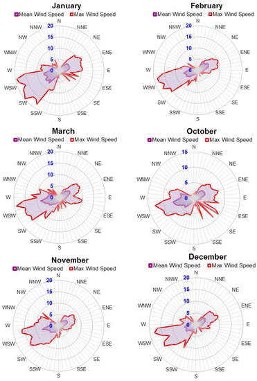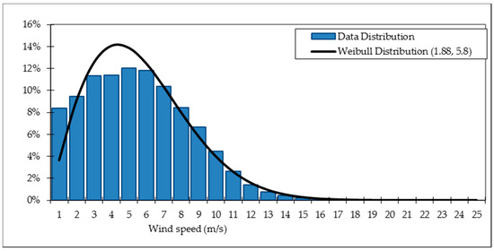 For this research, there are 52,704 data sets available which have been recorded during one full year. They are represented in 10-min readings, taking into account that the year 2008 was a leap year. However, the total valid data during the measurement period is lowered to 49,098 data sets during 340.95 days of the year, while the calm wind speed, measuring less than 2 m/s, is 0%. The missing data in the examined time frame is 3605 samples representing 6.8% from all samples.