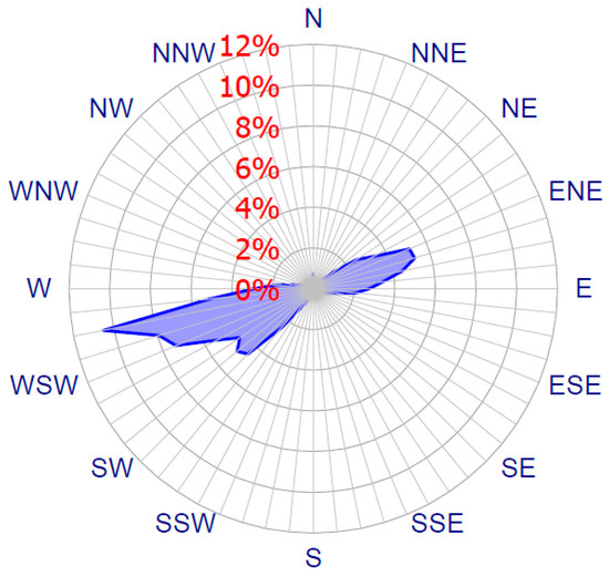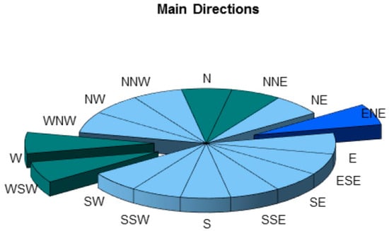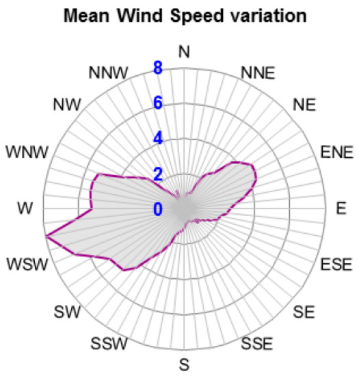 20], where the Weibull distribution is most commonly used. The wind direction variation is typically presented in a wind rose diagram. Merging these two, the recorded wind data can be built into sector-wise Weibull distributions, which can be used for wind resource assessment and annual energy yield calculations. The wind modeling techniques have been implemented in different studies on wind farm layout optimization. In order to perform the analysis, the compass is divided into 12 sectors, each one representing 30 degrees of the horizon. A wind rose may also be drawn for 8 or 16 sectors, but a 12 sector layout tends to be the standard set by the European Wind Atlas, where some studies used 12 sectors for wind direction such as in Dobrić et al. [