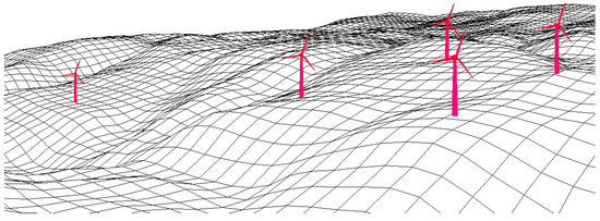 The WindFarm simulation tool has been used for the prediction of the wind flow over the topography. The background terrain height information extends 20 km × 20 km the simulation domain size extends 12.8 km × 12.8 km, and the inner region with boundary condition independency approximately 6 km × 6 km.