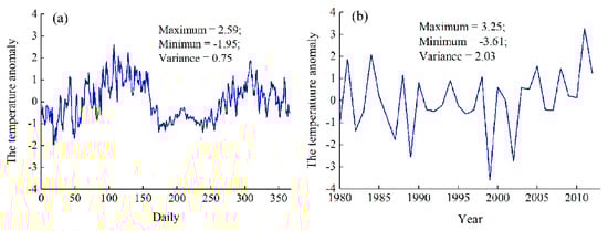 (a) anomalies of the daily range and (b) anomalies of the annual range.