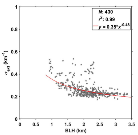 4.3. Relation of Near-Surface αext to Atmospheric Boundary Layer Height