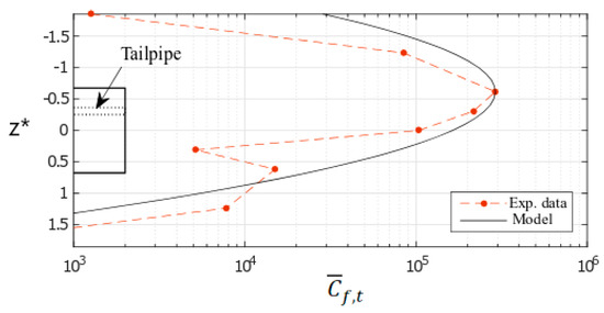 where U∞ is the velocity of the prototype (vehicle in an urban environment). Here, U∞ = 13.9 m/s. Based on an “average” engine as defined by [51], VUFP,tailpipe for the prototype was assessed as 10.3 m/s. For more details, one can refer to Rodriguez [49].