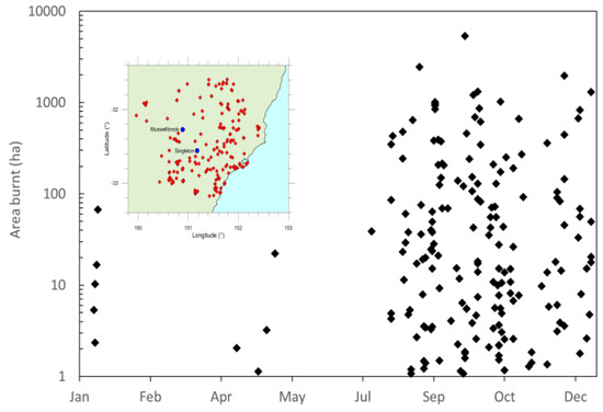 The contribution of the biomass smoke factor to PM2.5 at Singleton and Muswellbrook was elevated from September to January and showed slightly elevated levels during May and June (more distinct at Muswellbrook). Data from the NSW Rural Fire Service in Figure 5 shows that there were many wildfires and hazard reduction burns from August to December 2012.