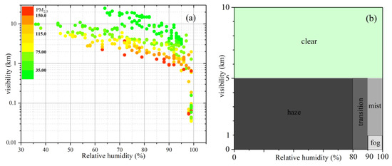 (a) the relation of visibility, Relative and PM2.5 and (b) the classification in the haze-fog episode.