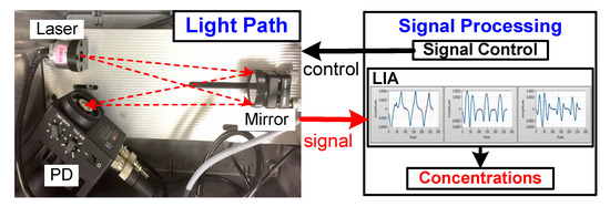 - Lan, L.; Chen, J.; Zhao, X.; Ghasemifard, H. VCSEL-Based Atmospheric Trace Gas Sensor Using First Harmonic Detection. IEEE Sens. J. 2019, 19, 4923–4931. [Google Scholar] [CrossRef]