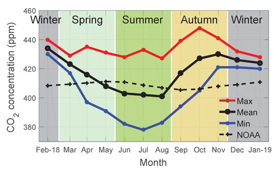 - Rice, A.; Bostrom, G. Measurements of carbon dioxide in an Oregon metropolitan region. Atmos. Environ. 2011, 45, 1138–1144. [Google Scholar] [CrossRef]