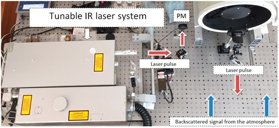 - Romanovskii, O.A.; Sadovnikov, S.A.; Kharchenko, O.V.; Yakovlev, S.V. Development of Near/Mid IR differential absorption OPO lidar system for sensing of atmospheric gases. Opt. Laser Technol. 2019, 116, 43–47. [Google Scholar] [CrossRef]
