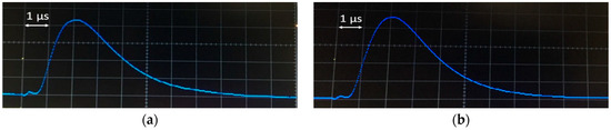 Figure 8 exemplifies oscillograms of lidar signals recorded during the in situ measurements (axis X—pulse length, µs; axis Y—U is the voltage of the backscattered signal at the photodiode detector, V).