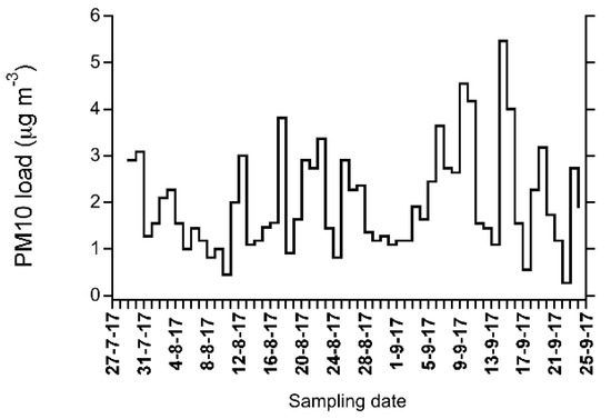 Daily mean concentrations of PM10 concentration between 10 August and 15 September 2017 measured at the Gruvebadet station (Ny-Ålesund).