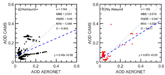 The AOD and related parameters were measured using sun photometers, which provide column integrated aerosol multi-wavelength extinction of the solar radiation through the atmosphere using the Langley method. These values are measured within the VIS and near-IR parts of the solar spectrum [65]. From sun photometer measurements several important aerosol optical parameters can be obtained, including: aerosol optical depth (AOD), Ångström exponent (AE), and the asymmetry parameter (g). AODs obtained from Hornsund and Ny-Ålesund were acquired with Cimel sun photometers: CE-318 and CE-318-T, respectively operated within the AERONET network. These sun and sky radiometers are equipped with spectral interference filters centered at the following wavelengths: 340, 380, 440, 500, 670, 870, 1020, and 1640 nm [66,67,68]. These instruments work in real time with a time-resolution of 15 min in free-cloud conditions [67]. The AOD measurement uncertainty at level 2.0 for the Cimel sun photometer is ±0.01–0.02 [68].