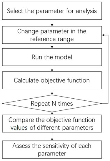 The multi-parameter sensitivity analysis method, developed by Choi et al. [], defines an objective function related to parameters and assesses the sensitivity by objective function curve. It divided parameters into sensitive and insensitive by the shape of objective function curve, the quadratic like curve represents sensitive parameters and the noise like curve represents insensitive parameters, but does not provide qualitative sensitivity. To compare the sensitivity of different parameters, we repeated the analysis multiples times to the objective function values as