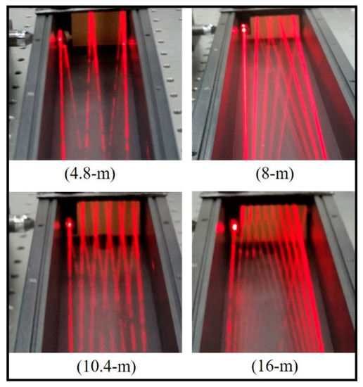- White, J.U. Long Optical Paths of Large Aperture. J. Opt. Soc. Am. 1942, 32, 285. [Google Scholar] [CrossRef]