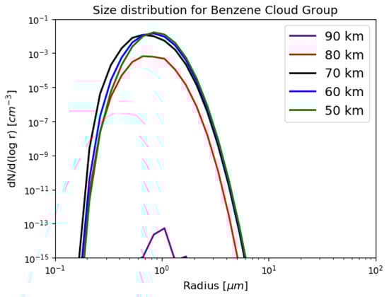 Size distribution of benzene ice particles in Titan’s atmosphere.