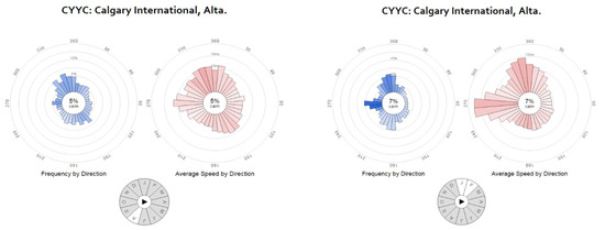 Calgary summer and winter prevailing winds (from http://windhistory.com [50]).