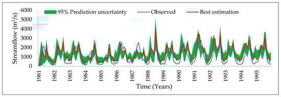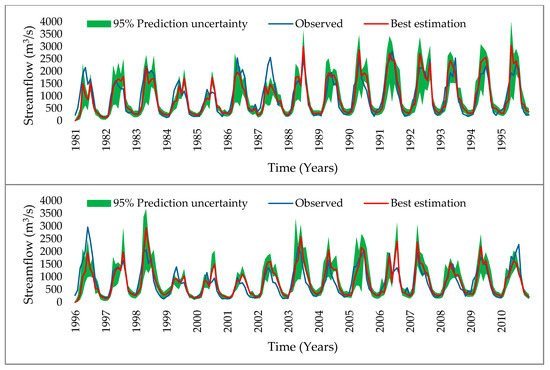 | Percentage of gauged data wrapped by the simulated 95% uncertainty band (p-factor) | 0.28 | 0.77 | 0.73 |