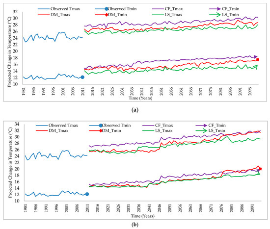 - Maximum temperature and minimum temperature are projected to increase in the future from 2021 to 2099 for all five GCMs, under both RCP (4.5) and RCP (8.5) emission scenarios.
