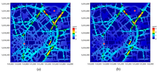 Air pollution in urban areas is a significant public health issue because of chronic diseases, principally of respiratory and cardiovascular nature [1], and because of premature deaths resulting from population exposure to atmospheric pollutants [2,3,4]. According to Lelieveld et al. [5], the loss of life expectancy due to air pollution is higher than those caused by tobacco smoking and AIDS. In 2015, air pollution-related diseases were estimated to be responsible for about 6.4 million premature deaths worldwide, with 4.2 million due to ambient air pollution. Indeed, during that year, about 90% of the population, mostly people living in cities, was exposed to particulate matter in concentrations exceeding the WHO air quality guidelines [2]. Air quality monitoring networks provide data in order to check the compliance with air quality limits. However, monitoring sites are usually limited in number and, even though located at sites supposedly representative of different urban microenvironments, their data may not properly assess the actual air quality over the whole urban area [6].