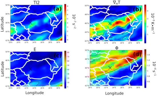 The horizontal temperature gradient [32] index is given by the magnitude of the horizontal temperature gradient: .