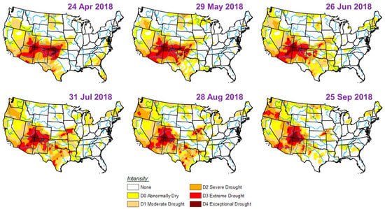 Figure 7a), and they verified well with the USDM class change map from 24 April to 29 May 2018 (