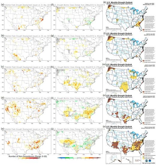 Figure 10m), and this prediction was successfully verified by the USDM class change map from 30 July to 27 August (