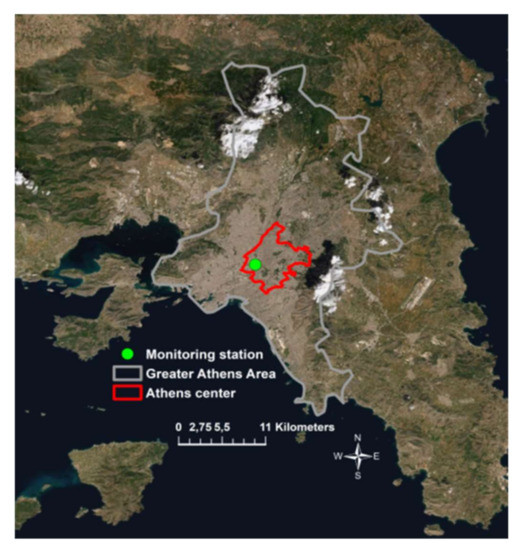 The monitoring was performed at a suburban site, very close to the Athens center and five of the city’s main traffic avenues (Figure 1).