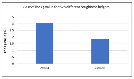 Case 2: Comparison of the Q-value (Equation (2)), i.e., of the average MAPEs over all parameters and over all locations for the CFX simulations using two different values of the roughness parameter Zs. The two values are Zs = 0.4 m and Zs = 0.88 m. Best results were obtained with Zs = 0.88 m.