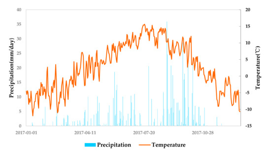 Dynamics of daily precipitation and temperature of Zoige in 2017.