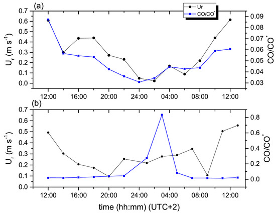 Figure 9 presents the diurnal patterns of the thermal velocity and of normalized CO concentrations in Marconi and Laura Bassi St. during the summer UHI experiment.