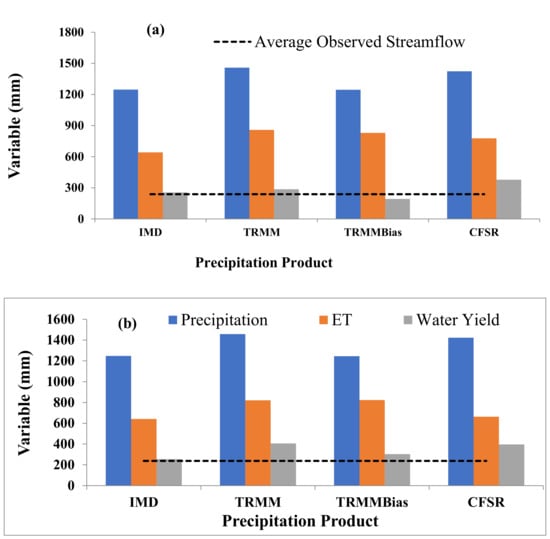 As mentioned, two different scenarios were considered-calibrating the SWAT model with IMD gridded data and rerunning the model with other considered precipitation products.