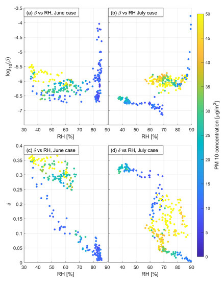 - Sakai, T.; Shibata, T.; Kwon, S.-A.; Kim, Y.-S.; Tamura, K.; Iwasaka, Y. Free tropospheric aerosol backscatter, depolarization ratio, and relative humidity measured with the Raman lidar at Nagoya in 1994–1997: Contributions of aerosols from the Asian Continent and the Pacific Ocean. Atmos. Environ. 2000, 34, 431–442. [Google Scholar] [CrossRef]