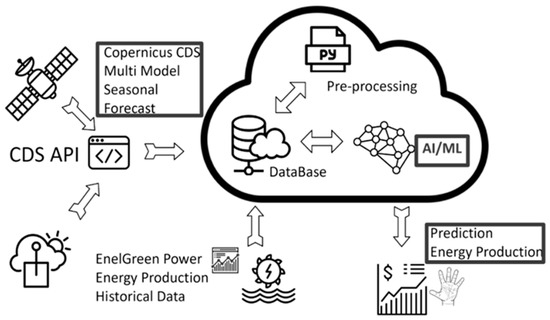 Existing hydropower plants are managed to optimize both production and financial actions in the energy market. Since these facilities can be placed anywhere, it is necessary to develop a forecast workflow that can be easily adapted to a wide number of plants worldwide. SCHT considers a replicable and adaptable forecast workflow that ensures, in principle, the widest adaptability both to different geographic areas and temporal scales. One of the main advantages of the proposed methodology consists in the possibility of using globally available input features and data-driven forecast approaches that can be easily tuned for any combination of features. A schematic representation of SCHT as a climate service can be seen in Figure 2.