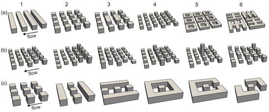 In Allegrini and Carmeliet [], we studied the impact of LHIs on the building cooling demand for six generic urban morphologies surrounding a central cubical building (Figure 2c). Wind-flow field, building surface temperature and local distribution of air temperature were calculated by coupling CFD and HAM approaches described in Section 2.2 [], while the cooling demand was calculated with CitySim.
