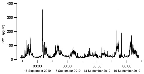 The PM2.5 levels in this area are always above WHO air quality guidelines for health [64] of 10 µg/m3. They are also above the United States Environmental Protection Agency (US EPA) National Ambient Air Quality Standards [65] of 12 µg/m3 and generally above the EU air quality directive [66] of 20 µg/m3. Sometimes the levels were two orders of magnitude higher than these guidelines, especially near traffic or other local pollutants. This shows the necessity to mitigate the levels by adopting cleaner technology and diverting traffic away from densely populated areas.