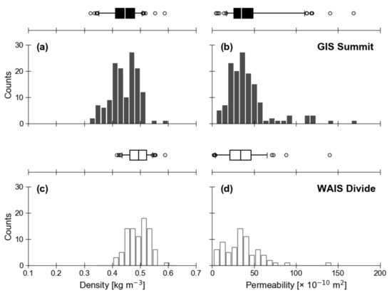 - Keegan, K.M.; Albert, M.R.; McConnell, J.R.; Baker, I. Climate effects on firn permeability are preserved within a firn column. J. Geophys. Res. Earth Surf. 2019, 124, 830–837. [Google Scholar] [CrossRef]