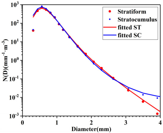 Raindrop size distributions (DSDs) and Gamma distribution fitting curves for stratiform and stratocumulus precipitation.