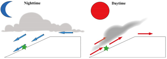 Schematic diagram of the diurnal variation of clouds (the green five-pointed star represents the position of the new source).
