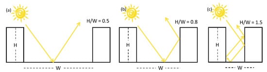 | H/W | Canyon effect, height-to-width ratio | m/m |