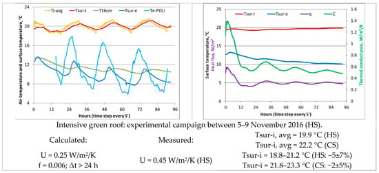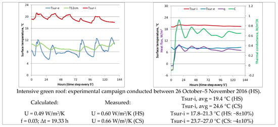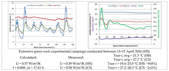 A green roof on a school in Athens was investigated to reduce the air temperature in a classroom on the top floor by almost 3 °C in summertime, compared with the correspondent classroom under the concrete roof [33]. Moreover, green roofs were found to be able to reduce the energy consumption in the heating seasons in Toronto by 3% as a result of a reduction of the energy demand [34].