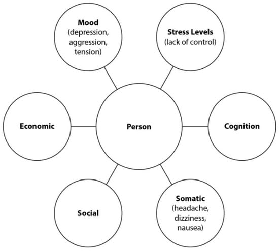 Utilizing the search term “malodor harm” or variations thereof (e.g., synonyms of “malodor” and “harm”) via publicly available databases such as ScienceDirect (https://www.sciencedirect.com/) revealed scientific research across an array of disciplines documenting various negative effects associated with malodors. These negative effects were observed to cluster into six categories as identified by the authors of this review (Figure 1).