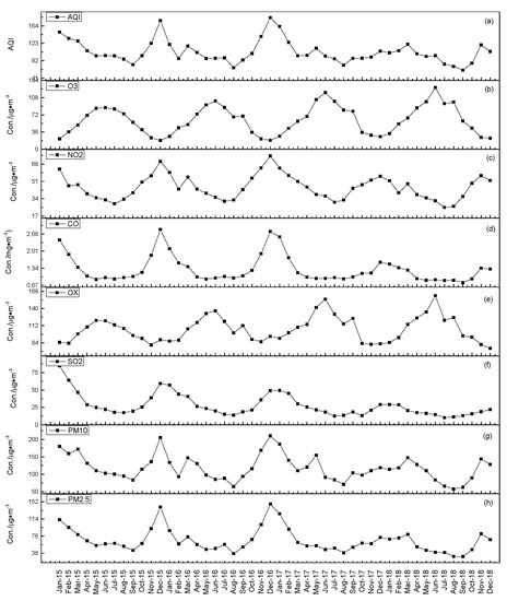 - He, J.; Gong, S.; Yu, Y.; Yu, L.; Wu, L.; Mao, H.; Song, C.; Zhao, S.; Liu, H.; Li, X.; et al. Air pollution characteristics and their relation to meteorological conditions during 2014–2015 in major Chinese cities. Environ. Pollut. 2017, 223, 484–496. [Google Scholar] [CrossRef] [PubMed]