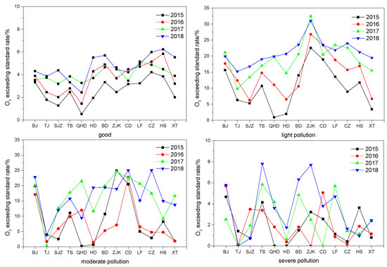 Annual exceeding standard rate of O3 concentrations at different air quality levels.