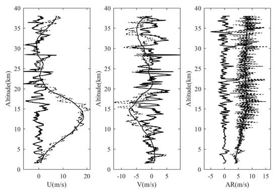 For wind speed disturbance, the vertical wavenumber spectrum is calculated following the same process. Since the wind speed is measured by Beidou positioning system, lag error correction is not considered. In radiosonde, the wind velocity directly obtained only contains meridional and zonal winds, so the horizontal wind velocity disturbance can be obtained by subtracting the fitted data from the original data. For vertical winds, we consider the disturbance component of the balloon’s ascent rate as a vertical wind velocity disturbance [23]. In the process of extracting the fluctuation of vertical wind speed, in order to eliminate the error caused by turbulence and balloon oscillation [20], the disturbance profile takes a 31-point sliding average (210 m) before the Fourier transform of the vertical disturbance component.