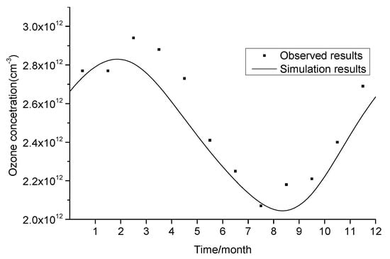 Figure 6b shows that the ozone concentration curve of the Tibetan Plateau is lower not only in summer and autumn but also in winter and spring. There is still a large gap between the ozone change curves of the Tibetan Plateau in Figure 6b and Figure 1. In summer and autumn, the observed value is far lower than the simulated value, which shows that the increased aerosol loading and initiated by it heterogeneous ozone loss is not the main cause of the ozone valley—it is only a part of it, and the main reason is the dynamic processes. In winter and spring, the observed value is higher than the simulation value, which shows that chemical factors are not the main factors that dominate the ozone over the Tibetan Plateau in winter and spring. For example, recent studies have shown that the ion–molecular reactions launched in the layer of secondary electrons—itself generated near the tropopause by galactic cosmic rays—could serve as a local source of ozone at middle to high latitudes [].