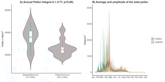 - Peel, R.G.; Kennedy, R.; Smith, M.; Hertel, O. Do urban canyons influence street level grass pollen concentrations? Int. J. Biometeorol. 2014, 58, 1317–1325. [Google Scholar] [CrossRef]